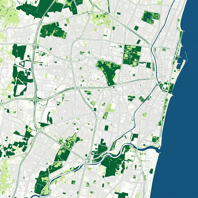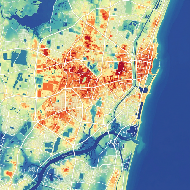 Tree density raster shows the distribution of tree cover across Ramapuram. Each pixel in the grid represents the density of trees in that area—darker green areas indicate higher tree density, while lighter areas indicate fewer trees.